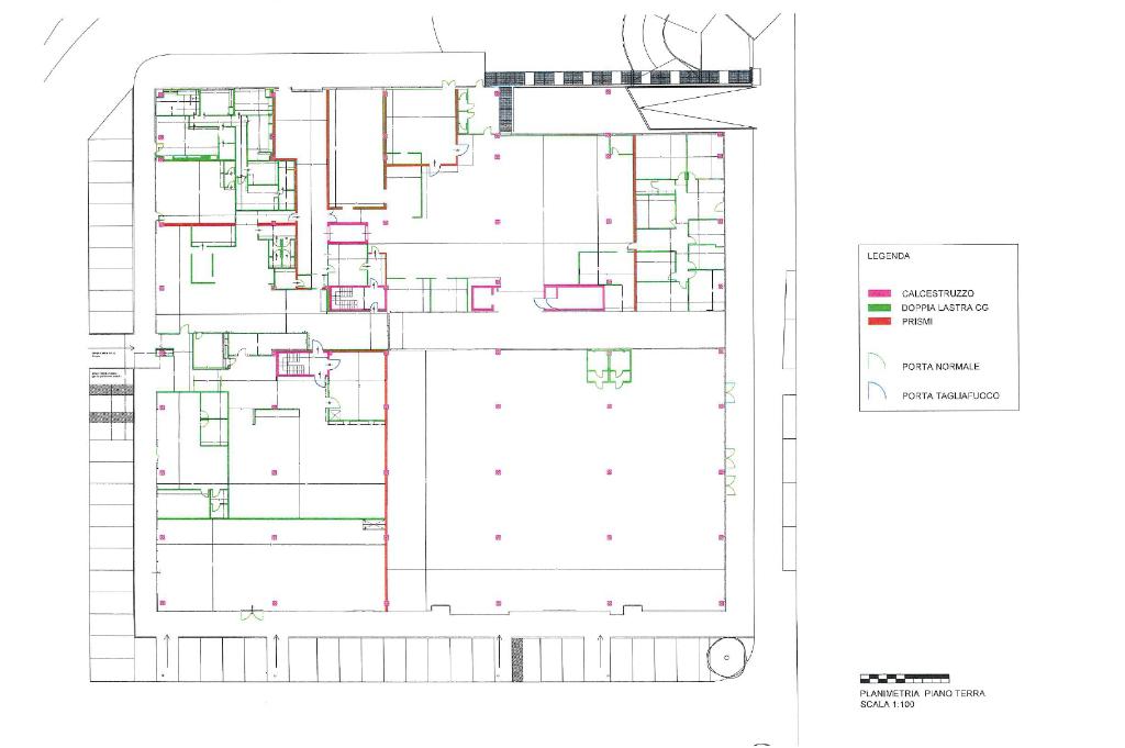 L’immobile può altresì essere frazionato in due moduli, ciascuno da 375 metri quadrati circa, con la possibilità di prendere in locazione metà della metratura; entrambe le campate dispongono di accesso e uscita indipendenti.
